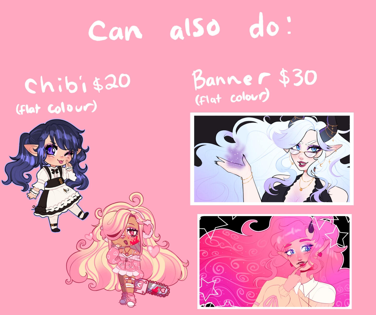 I take payment after the sketch is approved, no exceptionsIcan also do more things than what are listed here, such as reference sheets and customs, please message me for pricing on those :)